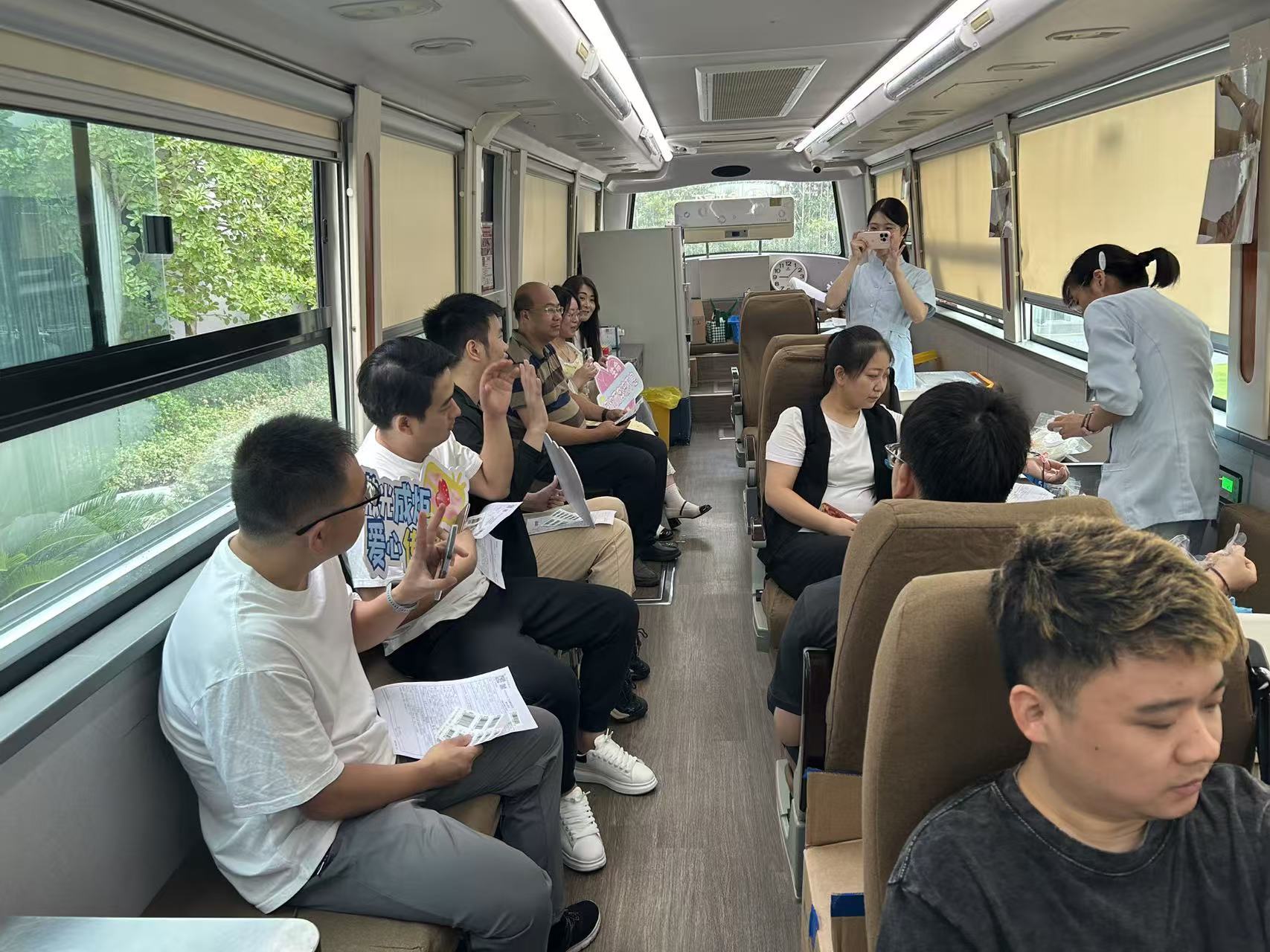The blood drive officially began. The first-floor lobby immediately buzzed with activity as employees participating in the donation queued up in an orderly manner. Among the crowd were familiar faces who had been donating blood for years, as well as newcomers donating for the first time, all coming together to form a warm current of love.