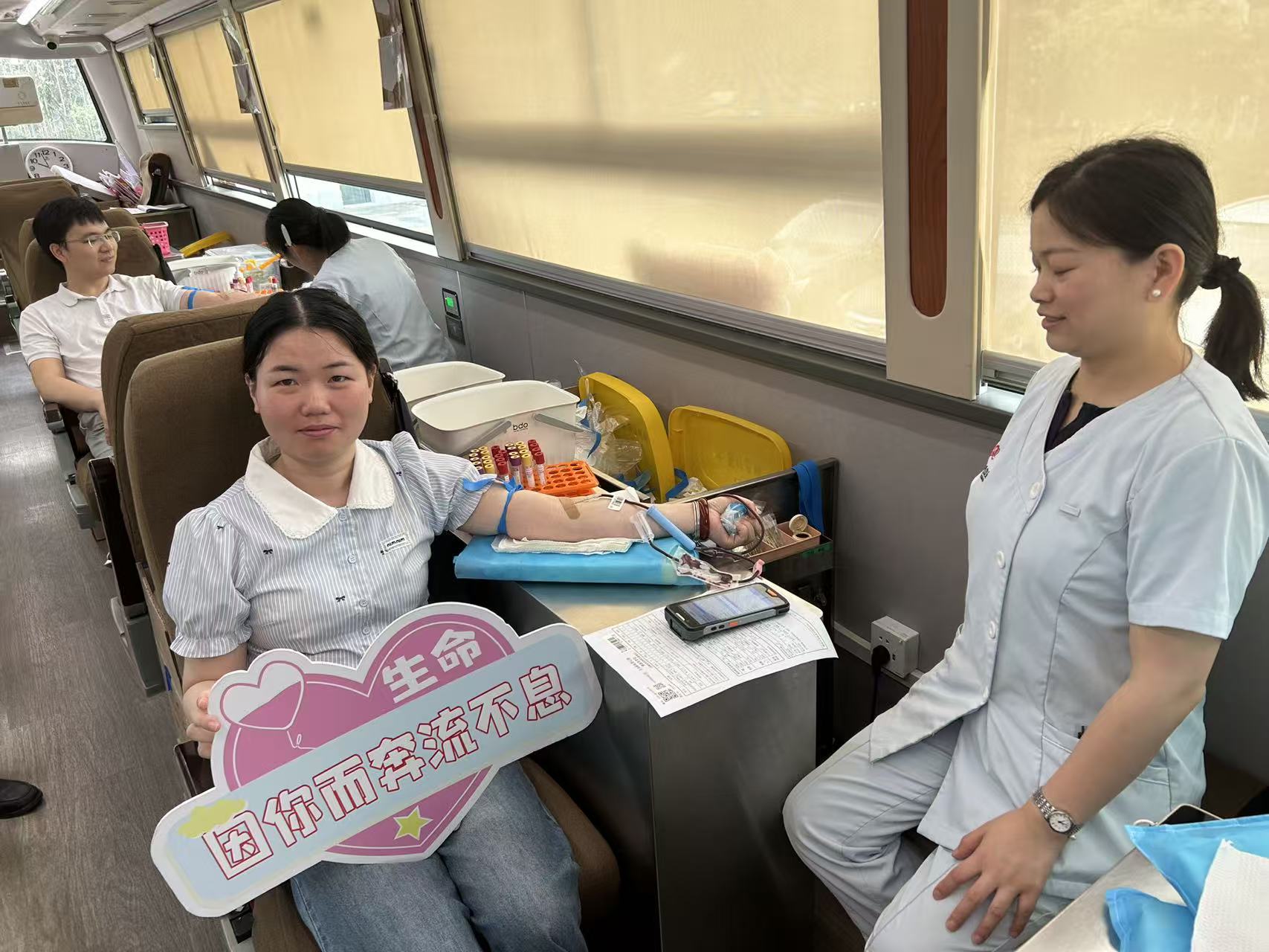 On the morning of 10th September , a mobile blood collection vehicle slowly entered the premises of EverProX Technologies Co., Ltd. (referred to as "EverProX", Stock Code: 300548.SZ). Colleagues from the Administration Department were already prepared and, together with staff from the Jiaxing Central Blood Station, quickly set up a temporary pre-donation screening area in the first-floor lobby. Everything was orderly, signaling the imminent start of the warm-hearted blood drive.