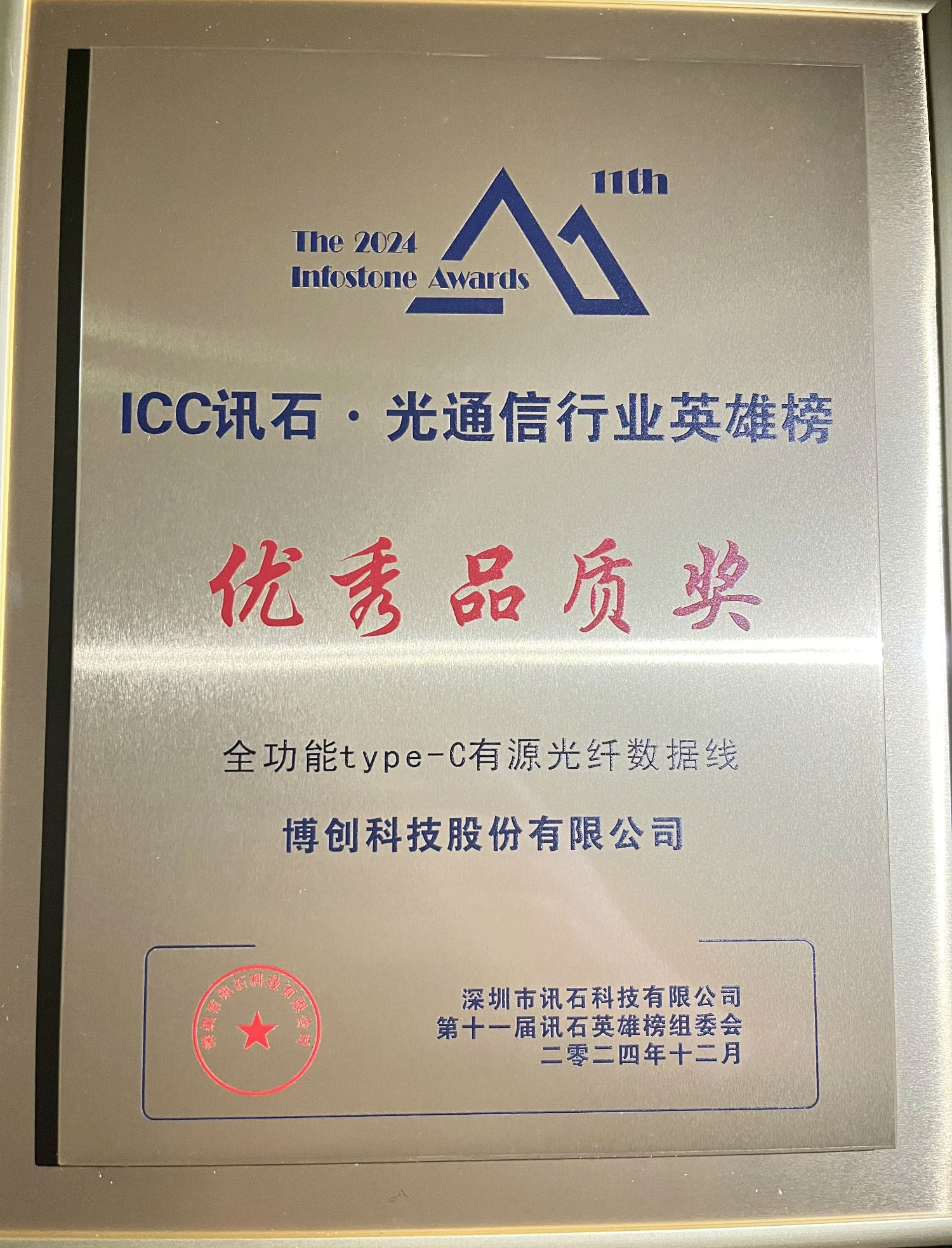 stake官网科技股份有限公司(以下称“stake官网科技”,证券代码:300548.SZ)作为行业领军企业,受邀出席聚会。旗下明星产品长芯盛全功效type-C有源光纤数据线,依附其卓越性能及自主立异设计,荣获“ICC讯石·光通讯行业英雄榜优异品质奖”,赢得与会者的高度评价。