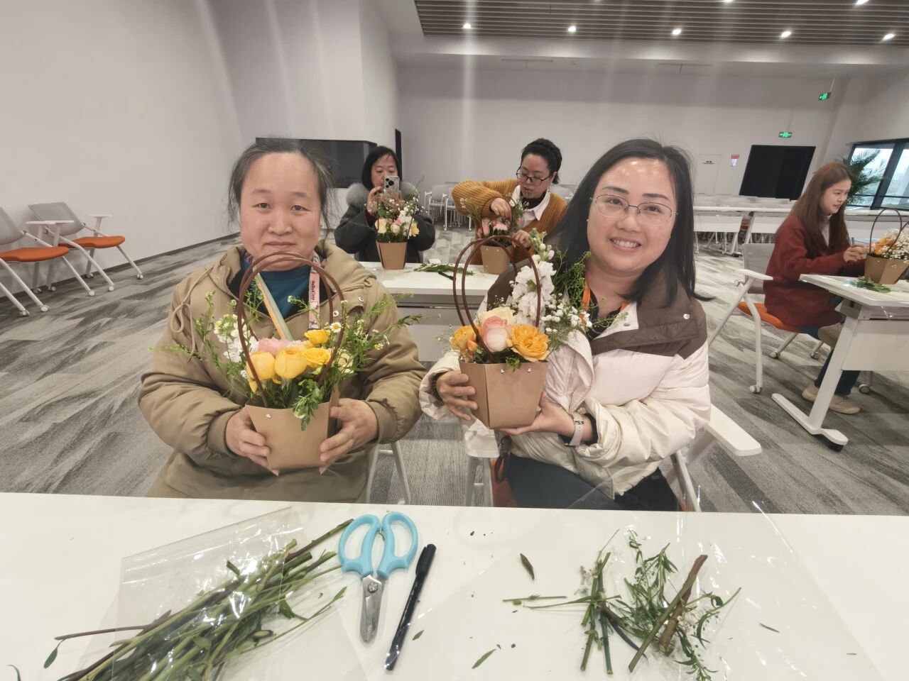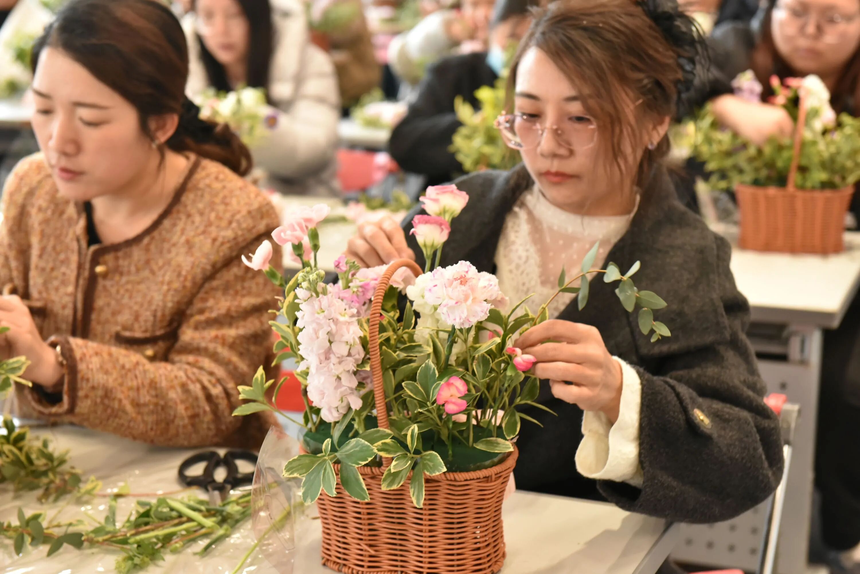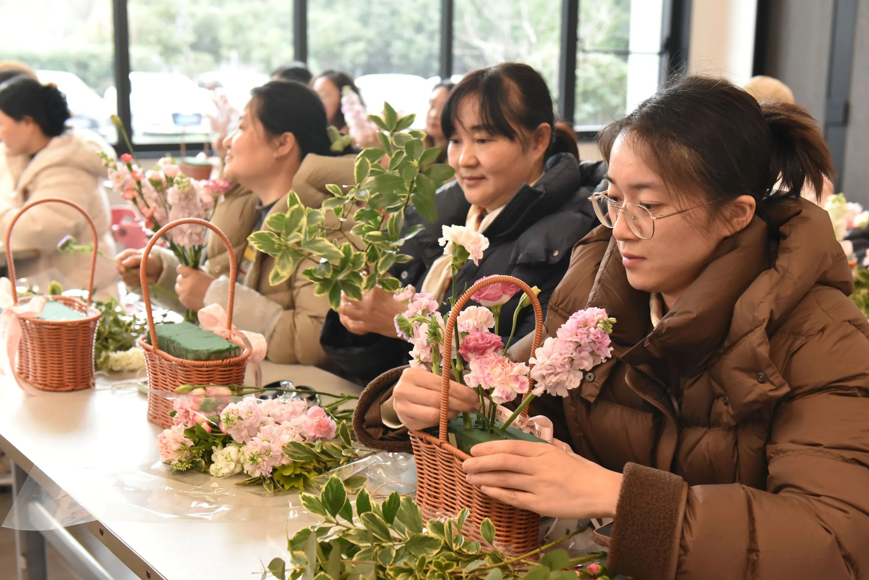 玫瑰的热情、康乃馨的温柔、洋桔梗的优雅……在女神们的巧手下,一朵朵鲜花被付与了新的生命 。修剪、搭配、造型,每一个办法都专注而投入,似乎在创作一件唯一无二的艺术品 。