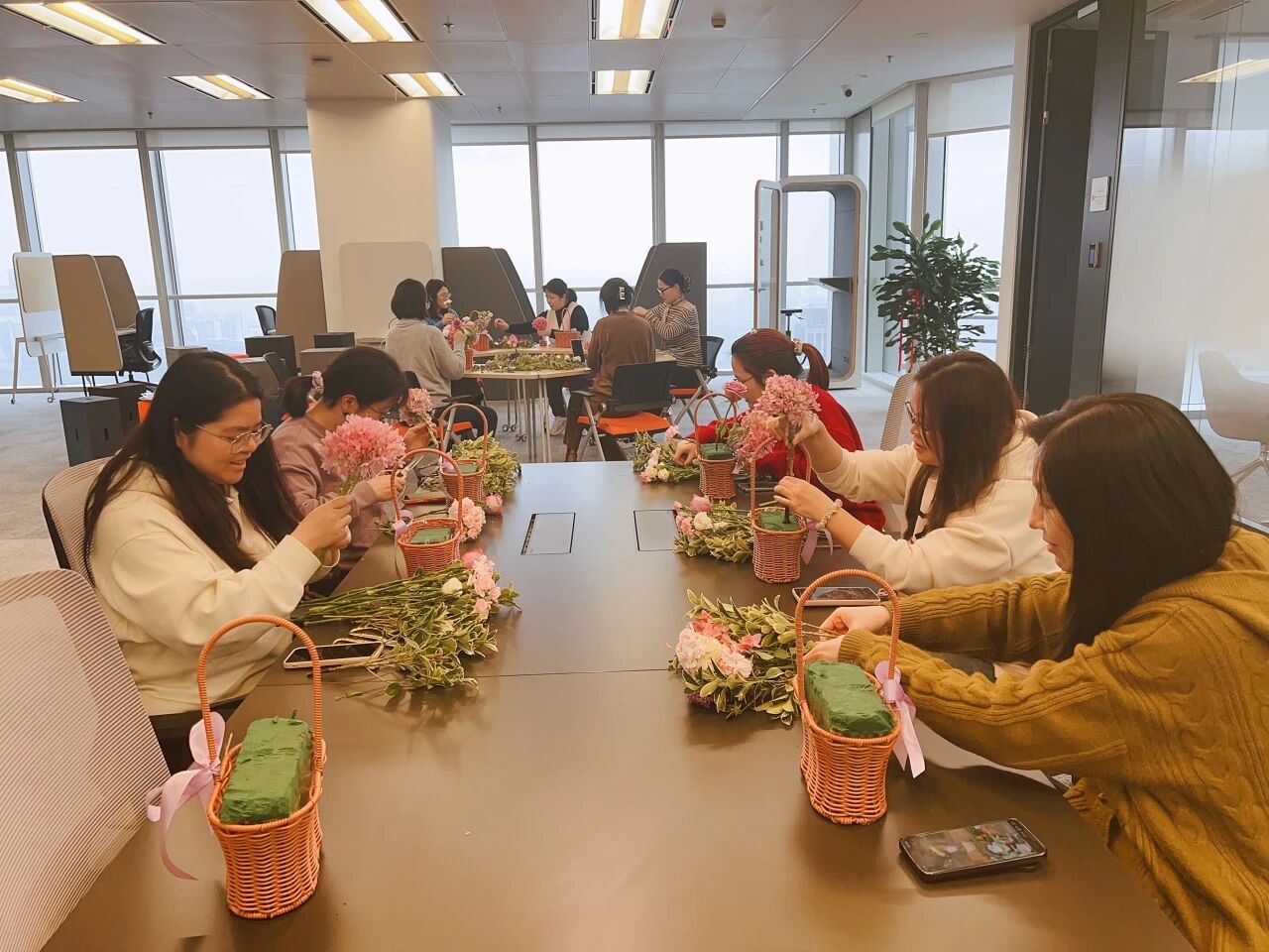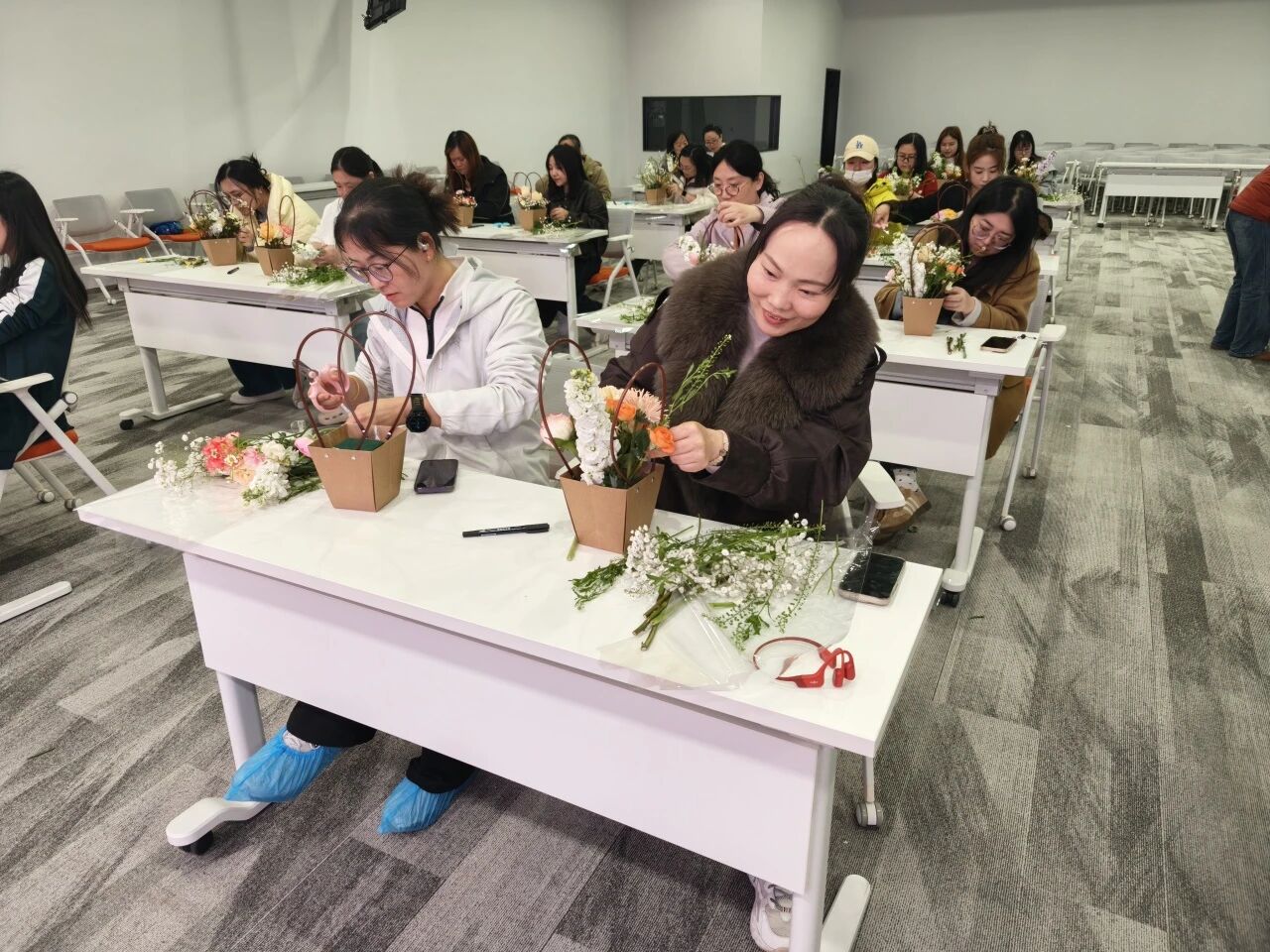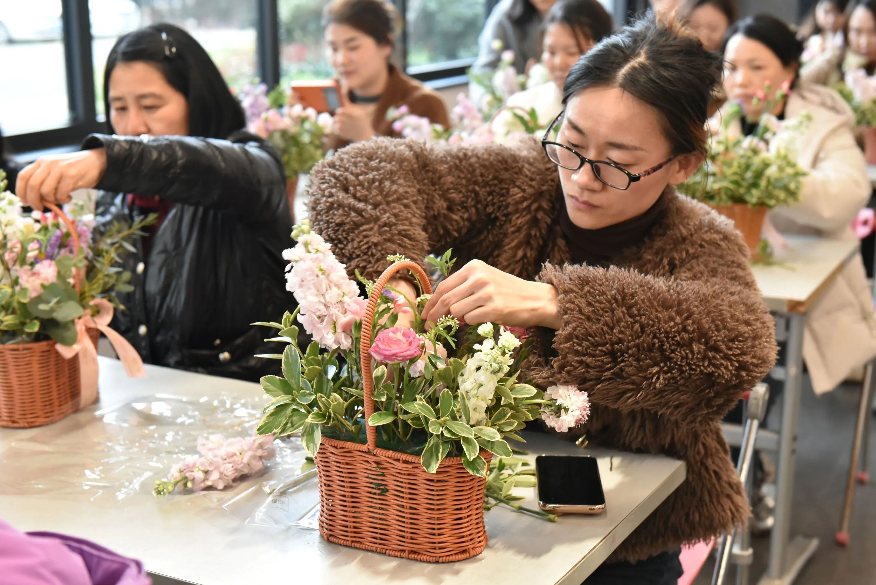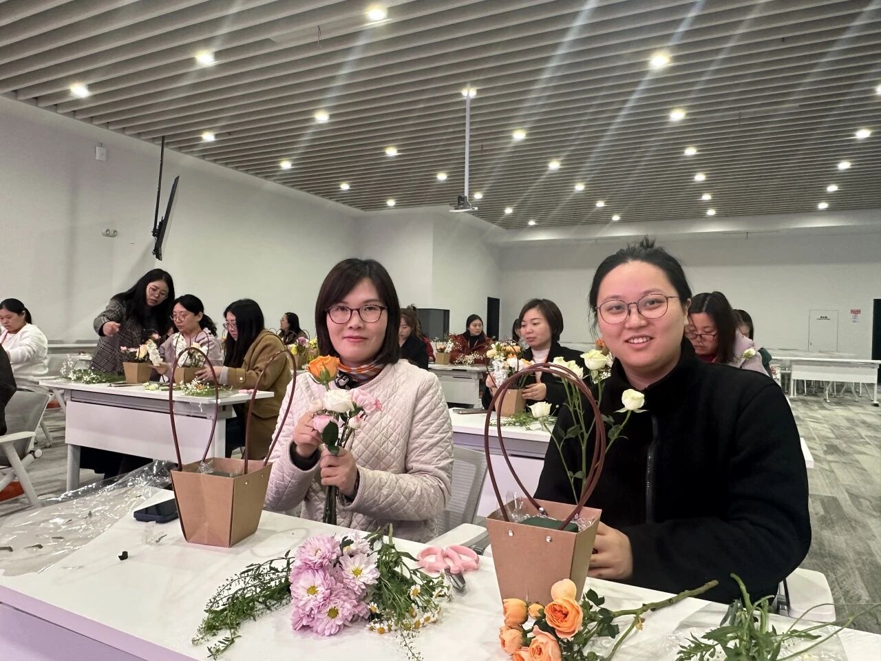 玫瑰的热情、康乃馨的温柔、洋桔梗的优雅……在女神们的巧手下,一朵朵鲜花被付与了新的生命 。修剪、搭配、造型,每一个办法都专注而投入,似乎在创作一件唯一无二的艺术品 。